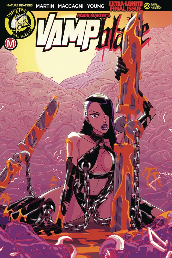 Extra-length series finale! This is it, the landmark 50th issue is also the series finale! All four seasons of Vampblade have been building to this!! The climax for Katie Carva and her cast of interdimensional characters culminates here in one extra-length blade brandishing extravaganza!! Also featuring the All-New Danger Doll Squad! Fans of the Danger Doll Universe will not want to miss this!