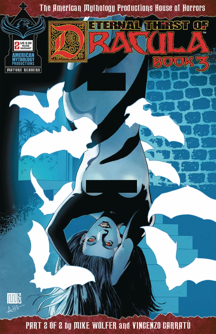 The blockbuster conclusion of the first Eternal Thirst of Dracula story arc comes to a blood-drenched conclusion in the final showdown to end all final showdowns! On Count Dracula’s secluded Philippine island stronghold, Van Hauser and Kandy “Kung Fu Mama” Brick must adopt every gimmick they can from the fantasy characters they portray in the 1970s “B” horror movies in which they normally star if they have any hope to survive against not only Dracula himself, but his vampire gorilla bodyguards. But Dracula’s domain is also under siege by an army of hideous vampire creatures who will fight to the death to destroy the undead Count and his legacy! The twists, turns, and unexpected revelations will leave you reeling in this outstanding homage to the horror films of the ’70s, for mature readers only!