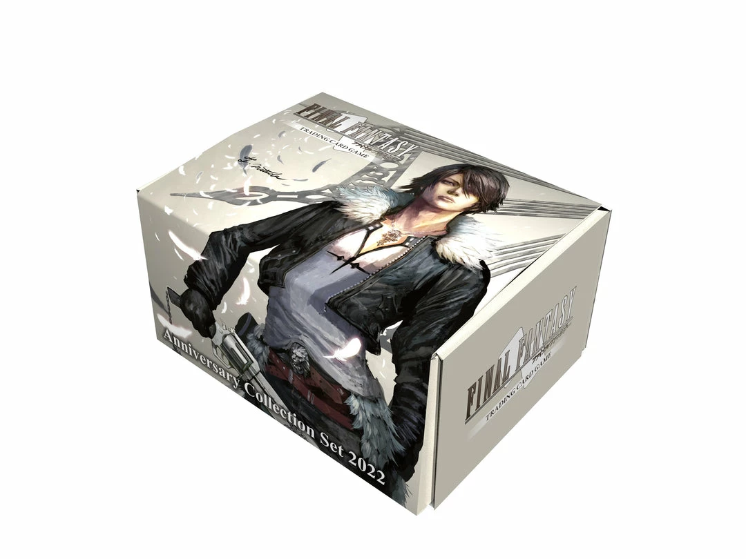 Five years since the launch of the Opus series-by August 2021, well have released 14 types of booster packs, and FFTCG has continued to grow and expand. We want to celebrate that by announcing a commemorative set available early next year. This set comes in an outer box that can be used as a mid-sized storage box, with a 50-card deck you can use to play with right away and an additional 200 cards featuring some sought after cards from Opus I through XII booster packs. On top of that, were introducing a new commemorative “Anniversary” promo card and including three of that design, for a total of 253 cards in this historical, first-ever FFTCG collection set. Because there are so many cards that are essential to building a deck, this set will be very helpful to players who have yet to start playing FFTCG or those who have just started. Additionally, there are 3 kinds of brand-new promo cards and 1 commemorative promo card design, with 3 cards of each design, which should make this set appealing to current players as well. Plus, there are L rarity reprint cards, including some of the cards contained in the preconstructed deck, with 2 cards per design. 1 of the 2 cards is a standard non-Foil card, whereas the other is a non-foil Full Art card. This is a great set for those collectors wanting to expand their collection into some past cards they may have missed.New promo cards- Commemorative promo cardo Yuna & Tidus [PR-111]: 3 cards, all Premium Full Art cards- Promo cards; included in the preconstructed decko Squall [PR-108]: 3 cards, 1 is a Premium Full Art cardo Yuna [PR-109]: 3 cards, 1 is a Premium Full Art cardo Lightning [PR-110]: 3 cards. 1 is a Premium Full Art cardReprint Legend card o Shantotto [1-107L]o Golbez [1-135L]o Diabolos [5-062L]o Yshtola [5-068L]o Rinoa [6-041L]o Cloud [8-006L]o Zidane [8-115L]o Gabranth [9-063L]o Fusoya [9-094L]o Ashe [10-106L]o Ritz [11-063L]*The Legend reprint cards are Full Art cards, but non-foil. There will be no Premium foil Full Art card of the Legend reprint cards.