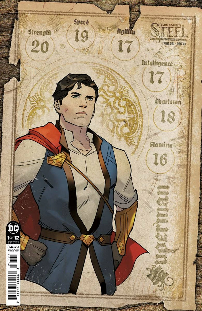 An entire medieval world will be forever changed when a spaceship crash-lands from a doomed planet. Monarchs will die, kingdoms will rise, and what seemed the end of the world for many…was only the beginning! An epic high-fantasy story set in a DC Universe where nothing is what it seems… From worldwide bestselling writer Tom Taylor (DCeased, Superman: Son of Kal-El) and acclaimed artist Yasmine Putri comes a generational tale of good and evil within a brand-new DCU!