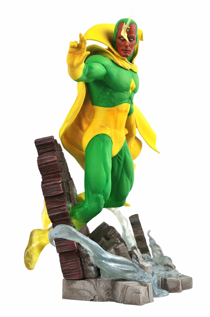 A Diamond Select Toys release! The Vision appears! A long-awaited addition to the Marvel Gallery line, this approximately 10.5-inch-tall sculpture of the synthezoid Avenger depicts the Vision on a battlefield base, phasing through a piece of rubble. Featuring detailed sculpting and paint applications, it comes packaged in a full-color window box. Designed by Nelson X. Asencio, hand-sculpted by Jean St. Jean!