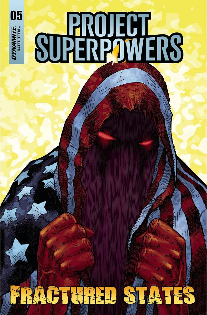 Who exactly is John Doe? Hero? Villain? Friend? Foe? All will be revealed, including the ultimate fate of all the patriotic heroes, in the climactic finale of the Project Superpowers: Fractured States epic! Will a broken country be healed, or will it be swept into the dustbin of history? All this, and the introduction of a brand-new hero!