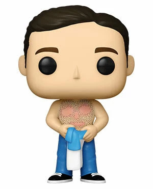 This 40-Year-Old Virgin Andy Waxed Pop! Vinyl Figure measures approximately 3 3/4-inches tall. Comes packaged in a window display box.