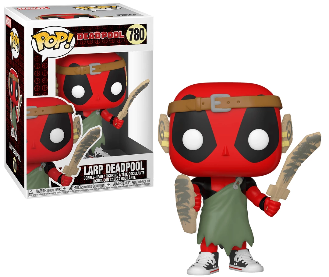 Wish the Merc with a Mouth a very happy 30th year! This Deadpool 30th Anniversary LARP Nerd Deadpool Pop! Vinyl Figure measures approximately 3 3/4-inches tall. Comes packaged in a window display box.