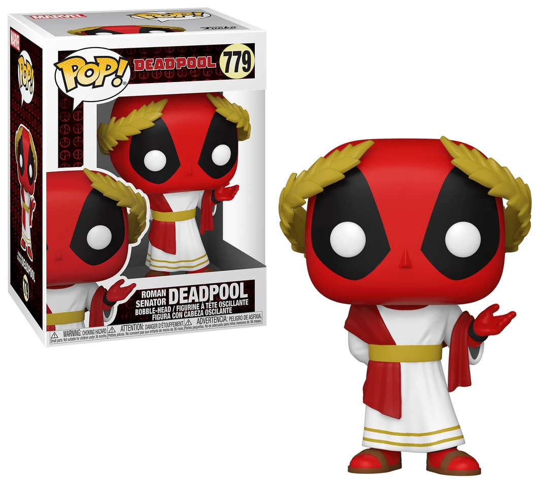 Wish the Merc with a Mouth a very happy 30th year! This Deadpool 30th Anniversary Roman Senator Deadpool Pop! Vinyl Figure measures approximately 3 3/4-inches tall. Comes packaged in a window display box.