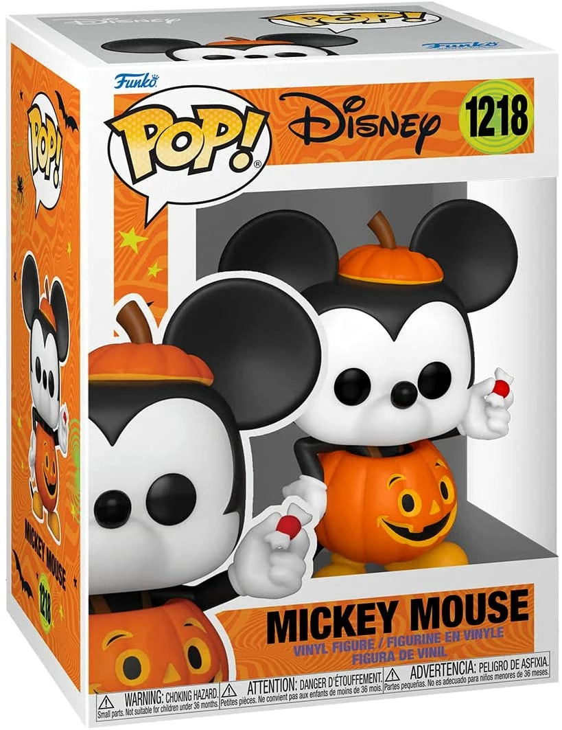 This Disney Trick or Treat Mickey Mouse Pop! Vinyl Figure measures approximately 3 3/4-inches tall and comes packaged in a window display box.