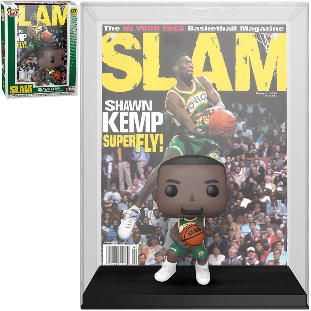 This NBA SLAM Shawn Kemp Pop! Cover Figure with Case includes a Pop! Vinyl Figure of the iconic player, a backdrop of the famous SLAM magazine cover, and comes packaged in a hard protector case. A perfect center piece to any sport fan’s collection! The hard case measures approximately 11-inches x 7-inches x 3 1/2-inches, while the figure measures approximately 3 3/4-inches tall.