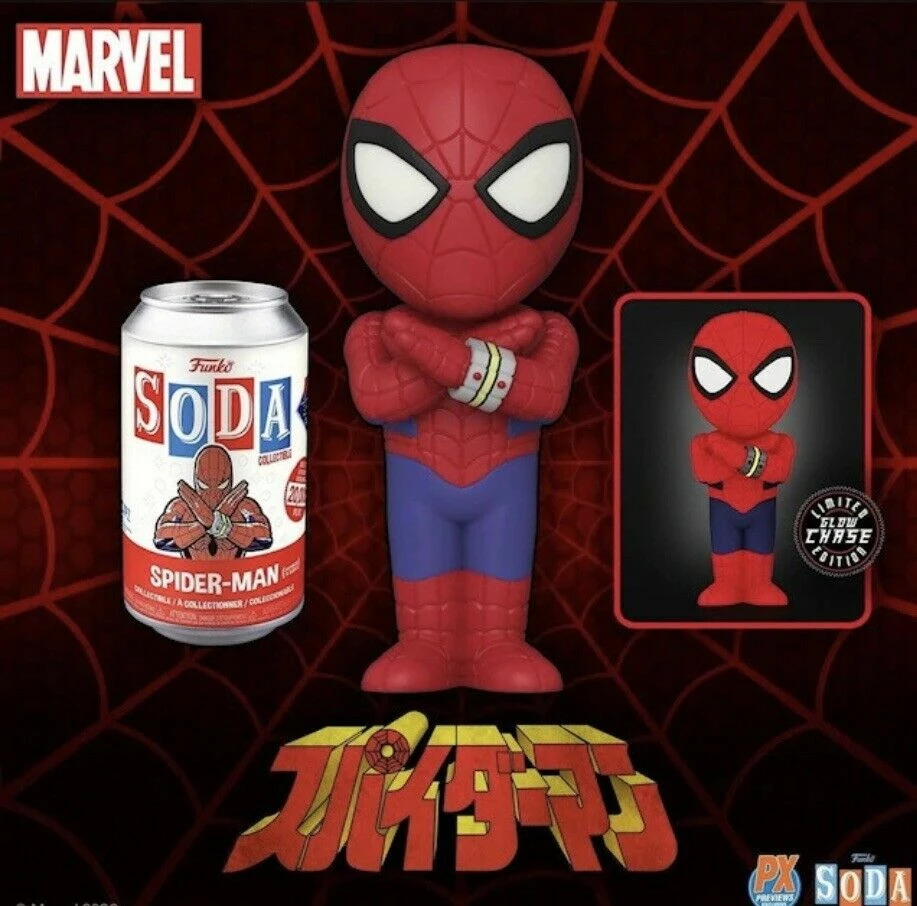 - FUNKOFrom Funko. A PREVIEWS Exclusive! Spider-Man of Earth-51778 is here to put a uniquely Japanese spin on your Spidey collection with this exclusive Free Comic Book Day collectible figure! In the 1978 tokusatsu live-action television series, young motorcycle racer Takuya Yamashiro assumes the mantle of Spider-Man, and now he joins your Funko collection as a PREVIEWS Exclusive Vinyl SODA. This 4 1/4-inch tall stylized vinyl figure features the hero in his Spider-Protector costume complete with Spider-Bracelet, and comes packaged in a retro-styled soda can along with a collectible disc. Summon your Spidey-Senses to hunt the glow-in-the-dark chase version, but you’ll have to open the can to find your flavor! This Commemorative Free Comic Book Day Vinyl SODA is limited to only 20,000 pieces!