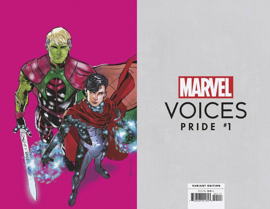 Marvel Comics is proud to present its first ever queer-centered anthology! Ring in Pride Month with an amazing assembly of writers and artists from all walks of life. Wiccan and Hulkling! Iceman! Mystique and Destiny! Karma! Akihiro! Nico Minoru and Karolina Dean! Celebrate these and so many more legendary characters from across the Marvel archive! New and fan-favorite creators tell their Pride stories – stories of inspiration and empowerment, stories that illustrate “the world outside your window” in full color. Plus, some of Marvel’s biggest LGBTQ+ moments get a special reprinting. Don’t miss an extraordinary new chapter in Marvel history!