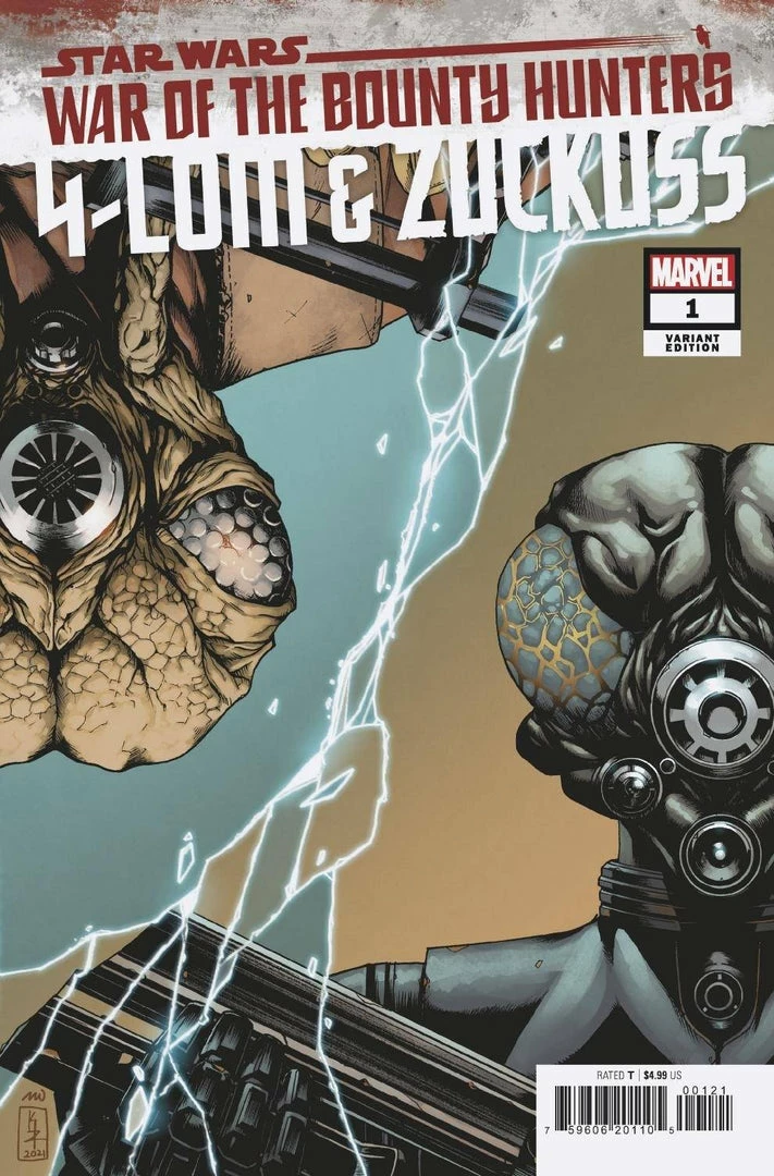 Together, lethal droid 4-LOM and Gand Findsman Zuckuss make an unparalleled bounty hunting team. Yet a brutal battle with Boba Fett has divided them. Lost and alone on the crime-infested streets of Nar Shaddaa, Zuckuss faces down an utterly transformed 4-LOM…but why is his old friend out for blood? The answer may lie in the past, from an early mission that helped forge their formidable partnership. Daniel José Older and Kei Zama’s one-shot is the second of four action-packed “War of the Bounty Hunters” tie-ins about the criminal underworld’s most notorious hunters and scoundrels, all told by the best STAR WARS writers and illustrators in the galaxy.