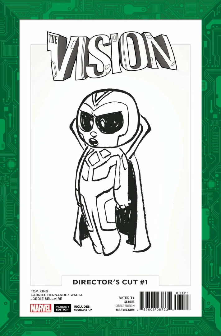 One of the most surprising super-hero stories ever told, now better than ever! Experience Tom King and Gabriel Hernandez Walta’s masterpiece…re-presented with bonus behind-the-scenes content! Behold the Visions! They’re the family next door, and they have the power to kill us all. What could possibly go wrong? Collecting VISION (2015) #1-2, plus extras – including Tom King’s original series pitch, script excerpts, character designs and sketches by Gabriel Hernandez Walta, cover sketches by Mike del Mundo and more.